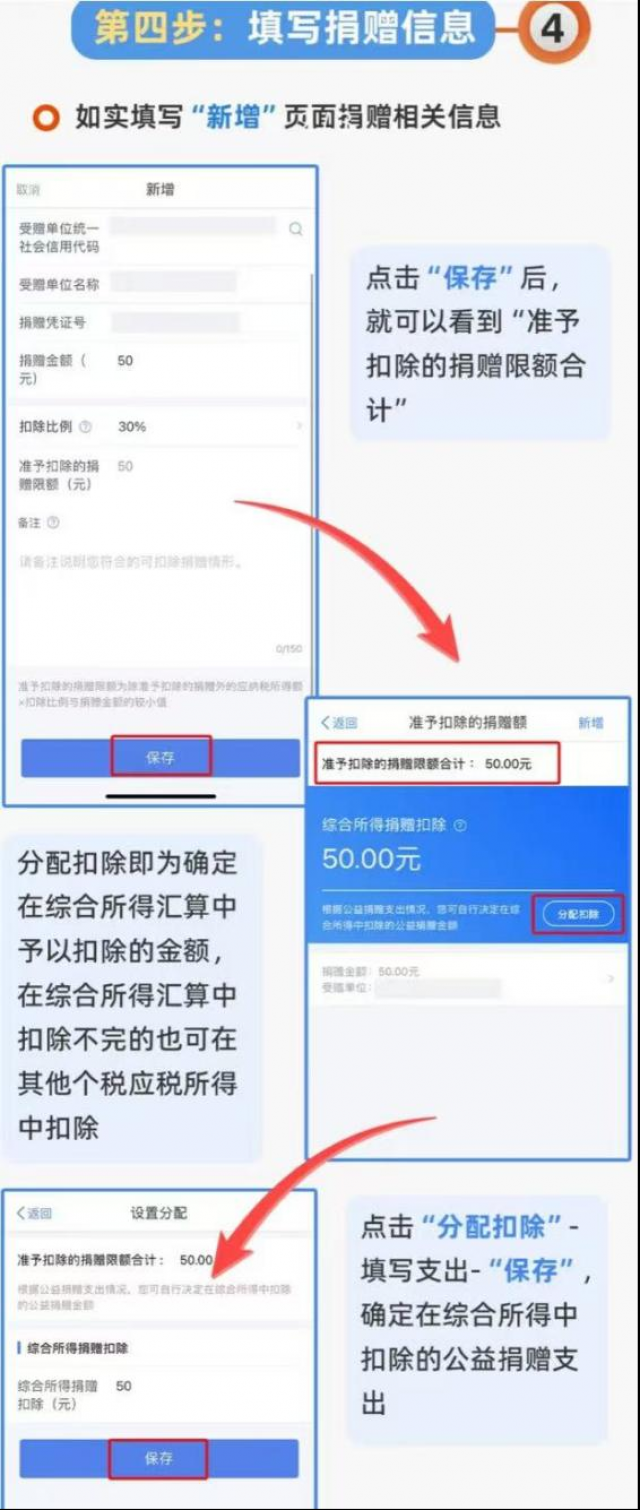 · 捐赠金额、捐赠日期、扣除比例(捐赠金额未超过纳税人申报的应纳税所得额百分之三十的部分,可以从其应纳税所得额中扣除)。